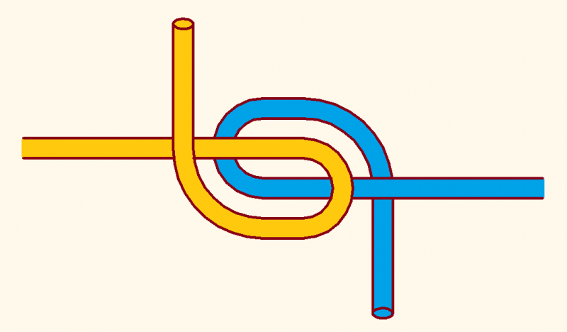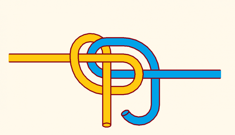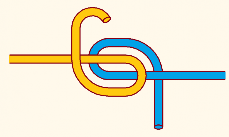 Zwei Überhandknoten werden perfekt ineinander verschlungen.