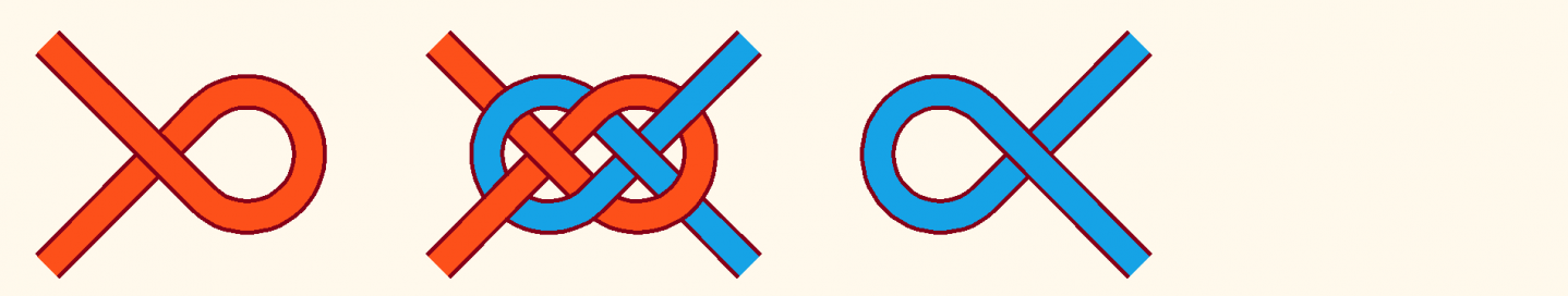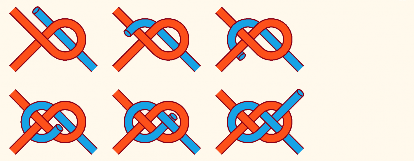 Ein Auge (orange) liegt auf dem zweiten Seilstück (blau)