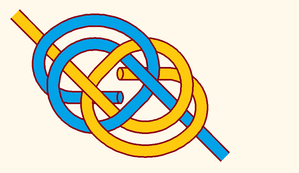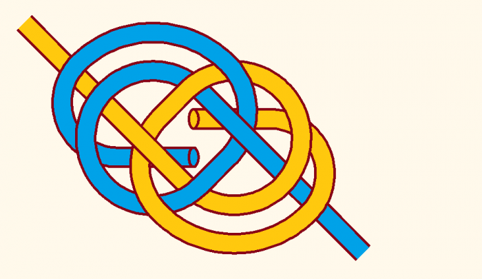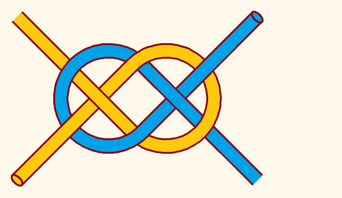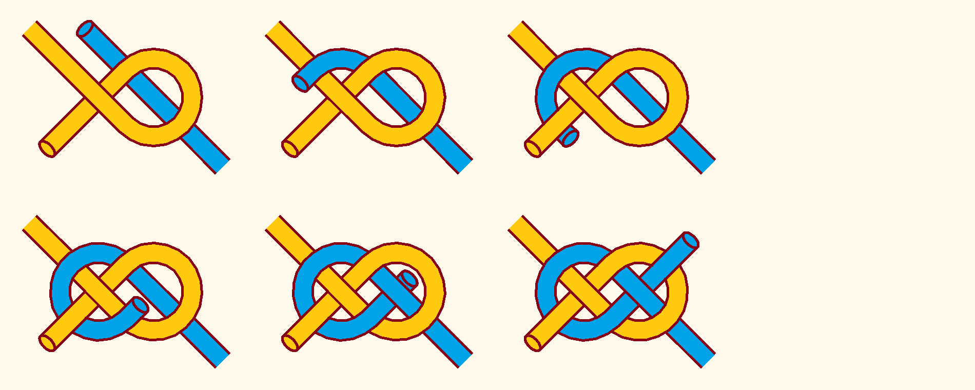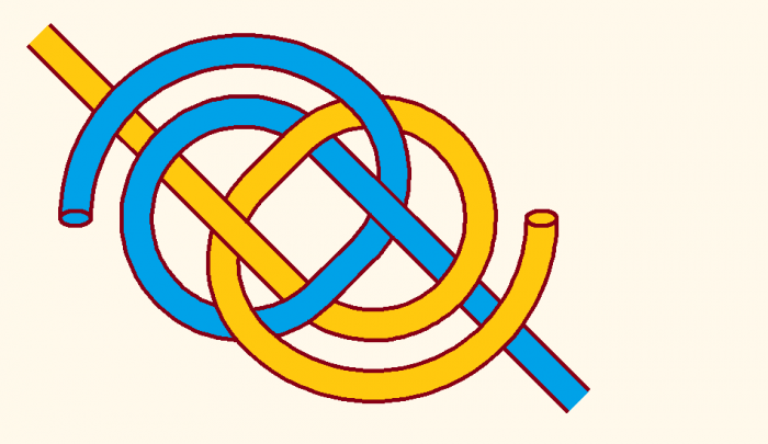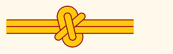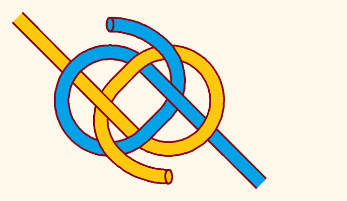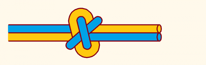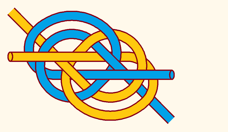 Ein Auge (gelb) liegt auf dem zweiten Seilstück (blau) auf.